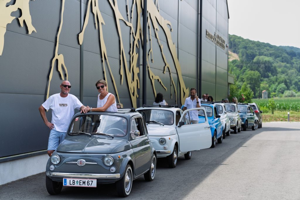 Erkunden Sie die idyllische Südsteiermark im charmanten Fiat 500 Oldtimer und genießen Sie das unverwechselbare Lebensgefühl zwischen Weinbergen und Genuss – inklusive einer Verkostung des aktuellen Sortiments im Weingut Hannes Sabathi in Gamlitz, wo Spitzenweine und südsteirisches Flair aufeinandertreffen.